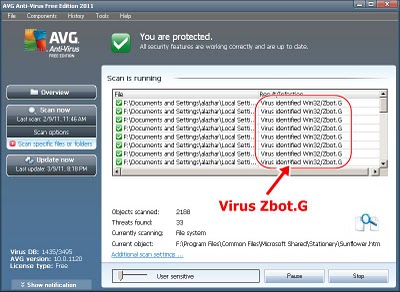 - Kemudian scan drive selain drive yg baru anda install ulang. Virus Shortcut 1234 Runmit ini akan terdeteksi oleh AVG dengan nama ZBOT.