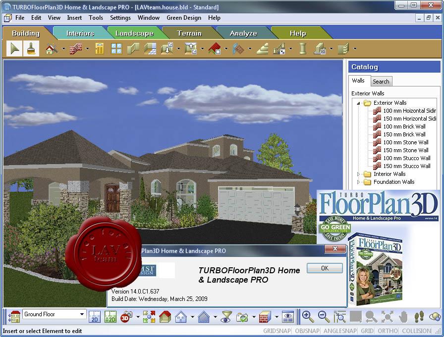 TurboFLOORPLAN 3D Home & Landscape Pro is award-winning home and landscape design software. More professional quality tools make it easy to quickly layout your dream home to exact specifications. Increase the value of your home by updating your kitchen or bathroom. Be your own interior decorator applying real world colors, materials and custom lighting to walls, furniture and cabinets. Create beautiful landscapes with gardens, pathways, deck or patio choosing from 7,500 plants. Then take a virtual walkthrough and see your designs in photorealistic 3D. Even reduce your energy bills and fight global warming with new "Green Home". Simply dream it and design it in TurboFLOORPLAN 3D!