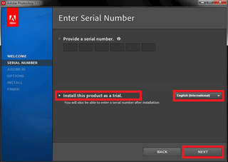 4. Pada step memasukan serial, pilih 'Install this product as a trial'